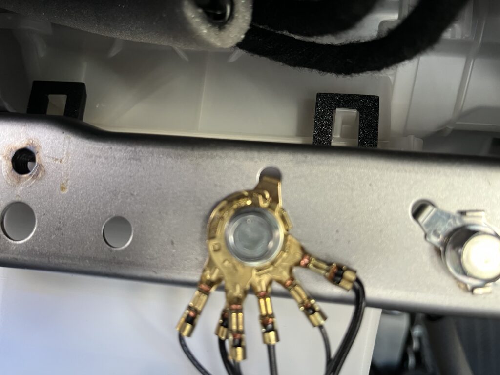 ここからUSB-C電源の配線を通していく。amazonで購入したオプション電源取り出しハーネス。FL5はBATTとかは取り出せない。USB-Cのハーネスは本来スモール・ACC・BATTを接続する。ACCに電圧が来たらBATTから電力を受給するようになっている。恐らくACC電源に負荷をかけないアンパイ設計。私は電源の取り出し易さ優先で、電源もACCを使う事にした。